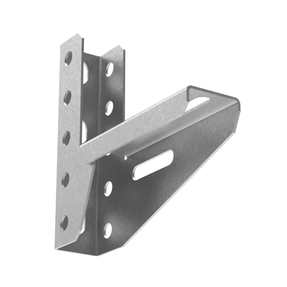 Консоль универсальная многофункциональная - это элемент системы подвеса, который можно использовать как самостоятельное изделие для подвеса лотка вдоль вертикальной опоры крепления,так и при креплении лотка на горизонтальных опорах крепления (потолок, пол) при установки П-образного профиля и П-образной стойки. Также, данная консоль имеет отверстия для крепления лотка на боковой стенки изделия.