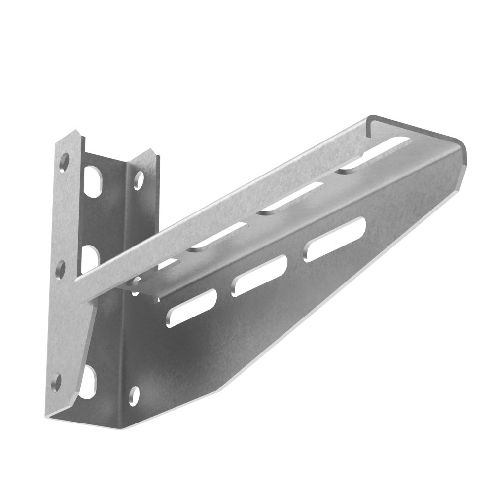Консоль универсальная многофункциональная - это элемент системы подвеса, который можно использовать как самостоятельное изделие для подвеса лотка вдоль вертикальной опоры крепления,так и при креплении лотка на горизонтальных опорах крепления (потолок, пол) при установки П-образного профиля и П-образной стойки. Также, данная консоль имеет отверстия для крепления лотка на боковой стенки изделия.