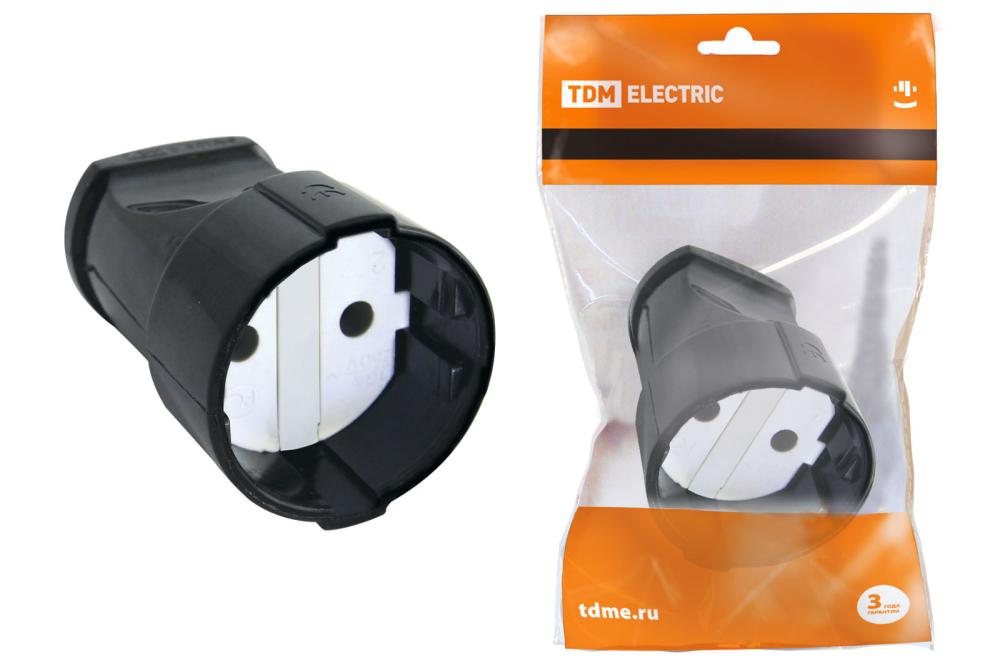 Кабельная розетка 2П б/з 10А 250B черная TDM