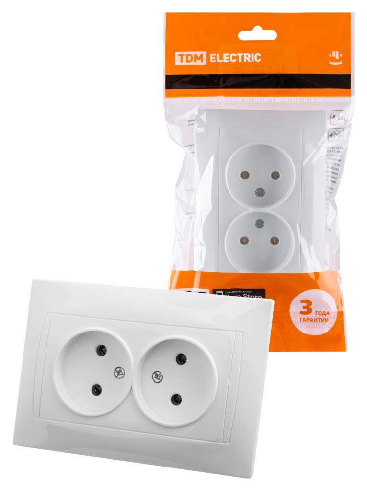 Розетка двойная 2П 10А 250В белая "Лама" TDM