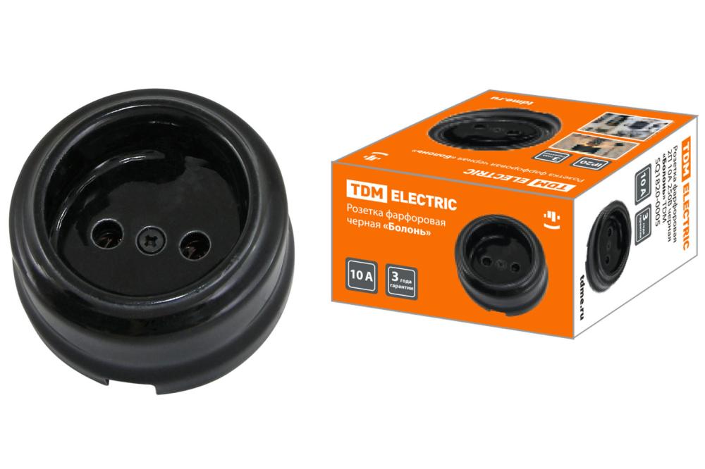 —Розетка фарфоровая 2П 10А 250В черная «Болонь» TDM