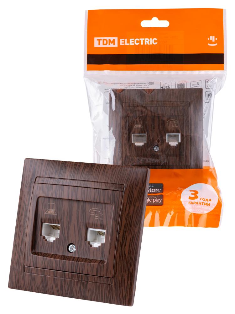 —Розетка телефонная RJ11 + компьютерная RJ45 венге "Лама" TDM