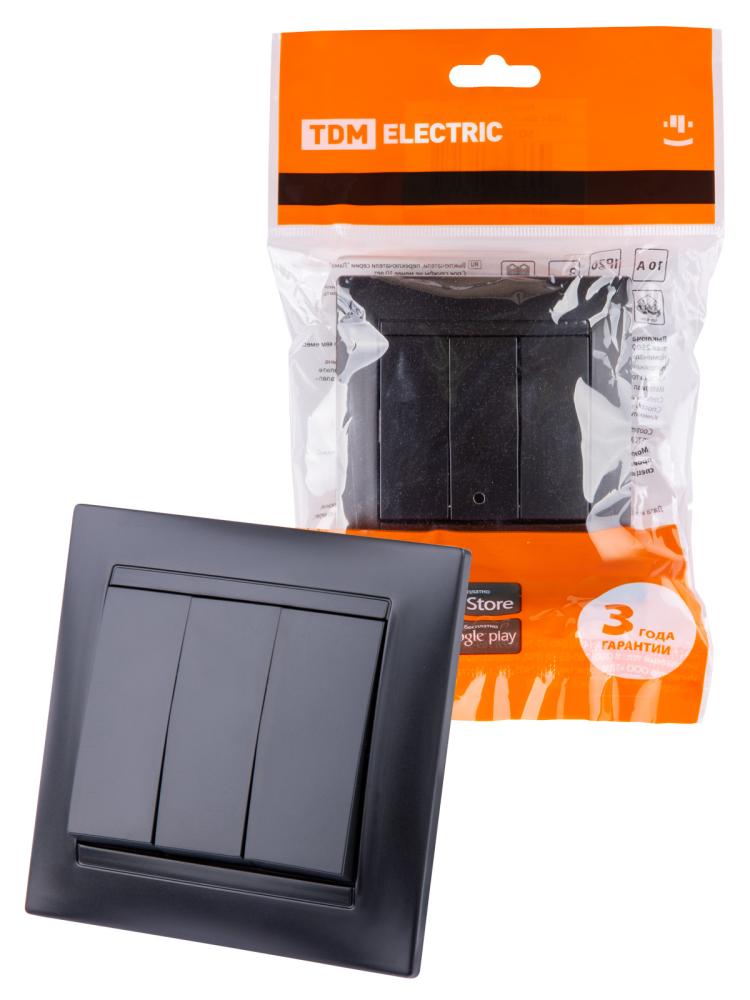 Выключатель 3-х кл. 10А графит "Лама" TDM
