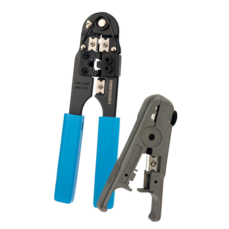 В набор входит: Кримпер PROconnect HT-210N для обжима 8P8C - 1 шт. Инструмент для зачистки и обрезки витой пары PROconnect HT-S-501B - 1 шт.