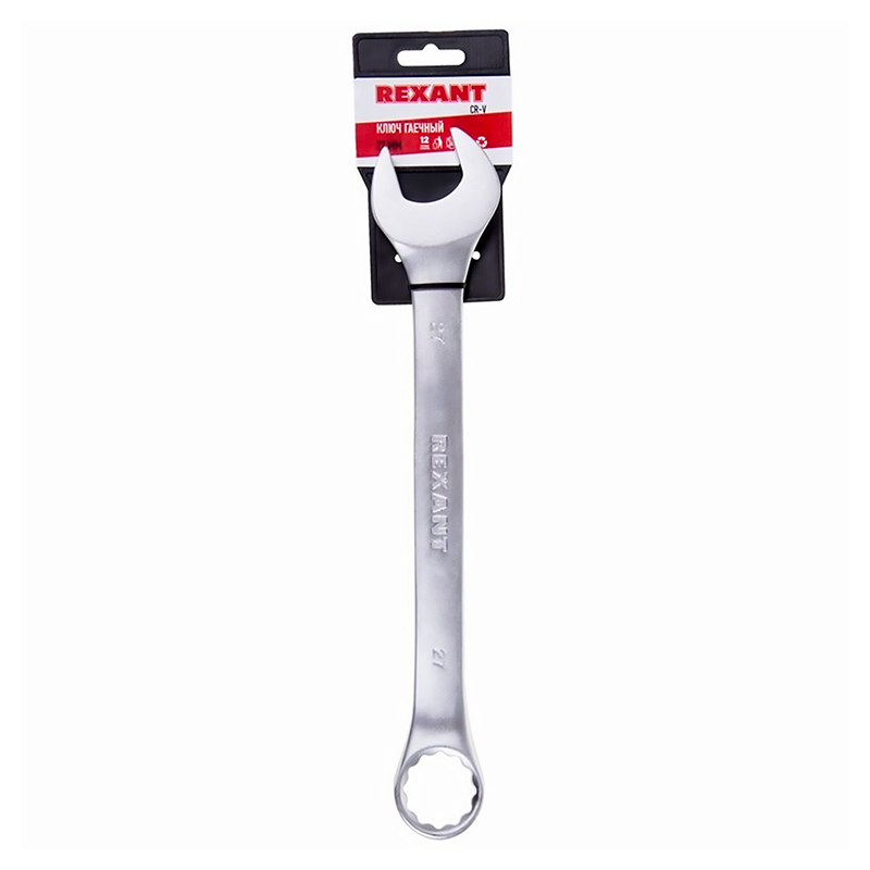 Ключ гаечный предназначен для монтажа/демонтажа резьбовых соединений. С одной стороны расположен захват открытого типа, с другой – накидного (кольцевого) типа. Кольцевой захват имеет 12 граней, благодаря чему улучшается сцепление с крепежом и уменьшается риск повреждения граней крепежа. Угол наклона кольцевого зева, относительно плоскости ключа в 15 градусов, делает монтаж более удобным. Ключ изготовлен из высококачественной хромованадиевой стали (Cr-V). Твердость материала рабочей части ключа 45-48 HRC. Ключ имеет покрытие хромоникелем, что продлевает срок его службы и обеспечивает усиленную защиту от коррозии. Ключ комбинированный Размер: 27 мм