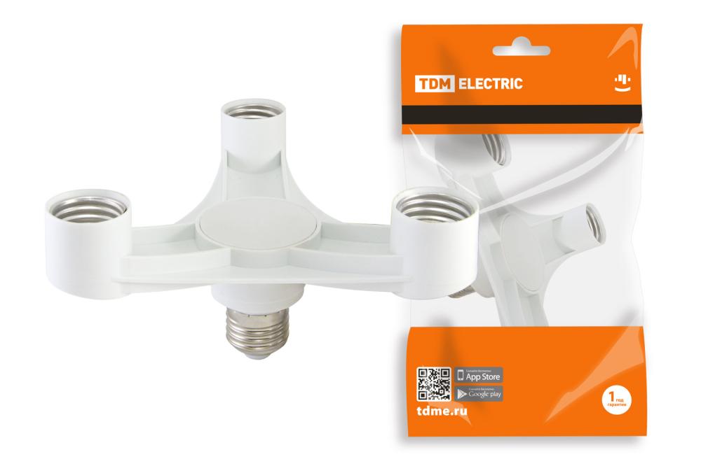 —Переходник Е27-3хЕ27, белый, TDM