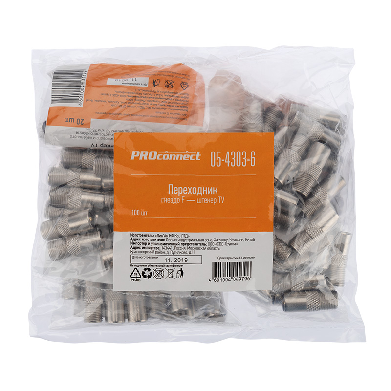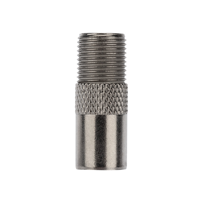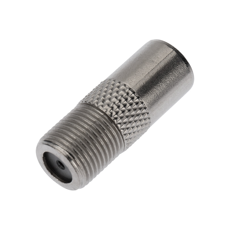 Переходник гнездо F - штекер F PROconnect используется для подключения эфирного, спутникового и кабельного телевидения с помощью радиочастотного кабеля волновым сопротивлением 50 или 75 Ом. Устройство обеспечивает качественную передачу видео и аудиосигнала с минимальным уровнем потерь. В процессе установки сторона с гнездом F накручивается на кабель, оконцованный F-разъемом, а сторона со штекер TV стыкуется с оборудованием. Монтаж не требует пайки контактов и использования специальных инструментов: может производиться в удаленных местах, таких как крыши домов или комплексов. Переходник изготовлен из никелированного цинка, обеспечивающего надежность соединения и возможность использования в условиях климатических перепадов. Подходит для кабелей типа RG-6 и других коаксиальных кабелей (SAT-50, SAT-703, DG-113), имеющих наружный диаметр около 6,8 мм.