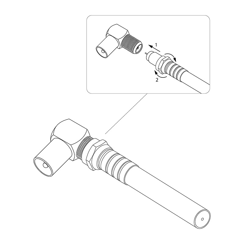 Переходник PROconnect используется для подключения эфирного, спутникового и кабельного телевидения с помощью радиочастотного кабеля. Устройство обеспечивает качественную передачу видео и аудиосигнала с минимальным уровнем потерь. Угловая форма переходника позволяет подсоединять провода в ограниченном пространстве, исключая сильные перегибы. В процессе установки сторона с гнездом F накручивается на кабель, оконцованный F-разъемом, а сторона со штекер TV стыкуется с оборудованием. Монтаж не требует пайки контактов и использования специальных инструментов: может производиться в удаленных местах, таких как крыши домов или комплексов. Переходник изготовлен из никелированного цинка. Подходит для кабелей RG-6, SAT-50, SAT-703, DG-113, имеющих наружный диаметр около 6,8 мм.