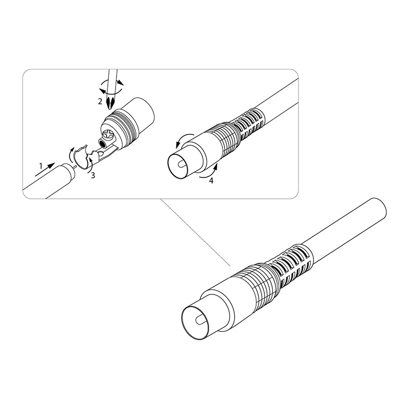 TV-разъем штекер PROconnect используется при организации телевидения (спутникового, эфирного и кабельного) с помощью радиочастотного кабеля. Изделие устанавливается на телевизионный кабель и передает сигнал на ТВ-устройства. Корпус разъема и контакты изготовлены из никелированного цинка, а колпачок из черной и прочной пластмассы. Конструкция предусматривает наличие амортизатора, который обеспечивает безопасный радиус изгиба кабеля, что снижает риск образования изломов. Монтаж осуществляется быстро и просто посредством винтового зажима. Для этого не требуется наличие специальных инструментов и профессиональных навыков.