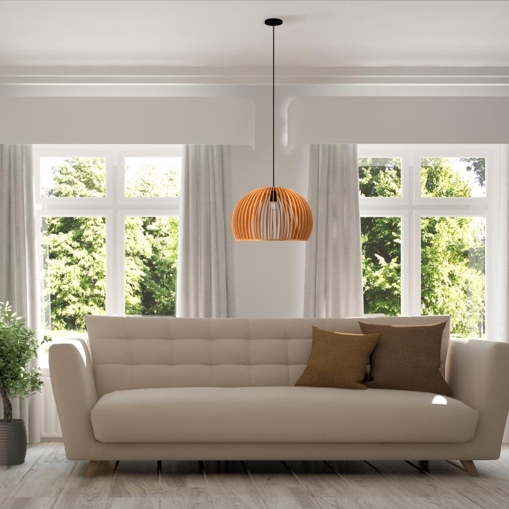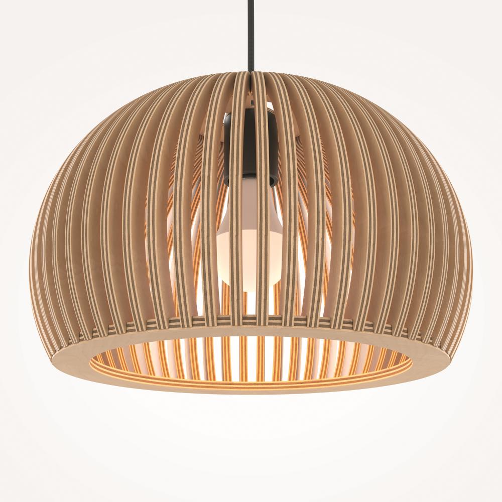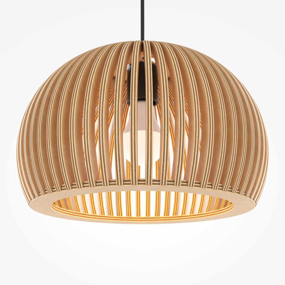Материал арматуры – металл, цвет – черный. Абажур – 5-ти слойная фанера бежевого оттенка, покрытая специальным ла- ком. Тканевый черный провод. Регулируемая высота. Простые лаконичные форма, природные материалы. Цоколь E27.