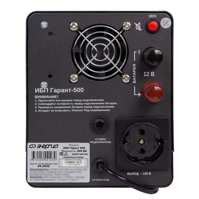 | Максимальная мощность, ВА/Вт | 500/300 |