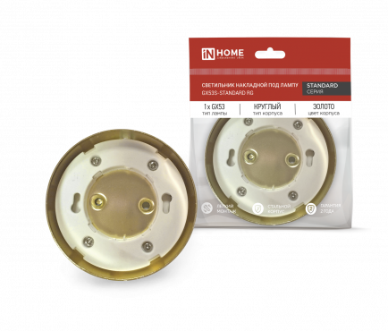 Накладной настенно-потолочный светильник ТМ IN HOME серии GX53S- standard может работать со светодиодными лампами GX53 мощностью от 4.2 Вт до 10 Вт. Линейка встраиваемых светильников GX53S-standard представлена в золотом, хромированном и белом вариантах корпуса. Модель проста в монтаже, подходит для установки в подвесные и натяжные потолки, подсветки мебели (например, кухонной зоны, шкафов-купе), витрин и т.п. Может применятся для общего и декоративного освещения интерьеров торговых, офисных, административных, жилых и других помещений. Материал корпуса светодиодного светильника – металл, который практически не нагревается в процессе эксплуатации. Не требует дополнительной теплоизоляции. Предназначен для работы в сетях переменного тока 230 В. Лампы в комплект не входят. Гарантия 2 года. Имеет сертификат ТР ТС (таможенного союза) EAC.